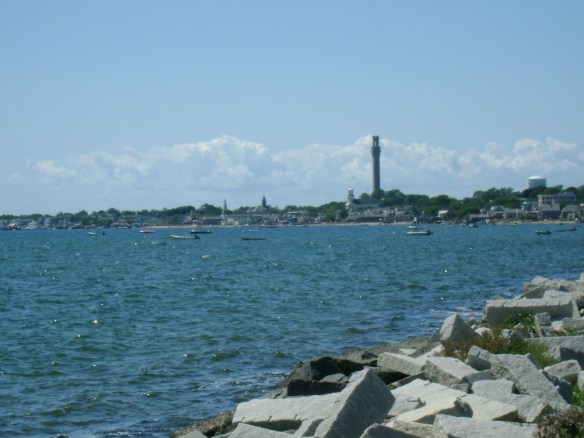 The view of Provincetown center, from Route 6A, the shore road, just over the Truro-Provincetown line, September 2012.