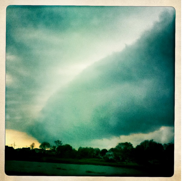 Storm over Wellfleet Bay, September 2011. I didn’t get any cool photos of the storm during my century ride a few weeks ago, but these images from our trip last year will give some sense of what the Cape Cod sky looks like when it’s about to pour. When this was taken, Jen, Sadie, and I had just walked over the footbridge over Duck Creek, which connects central Wellfleet with Hamblen Island/Cannon Hill. This funnel of a cloud swept over the area inside of 10 minutes, and the air over the small island became still and eerie and the light turned murky and green. Oddly, it didn’t rain on us, not even a drop.