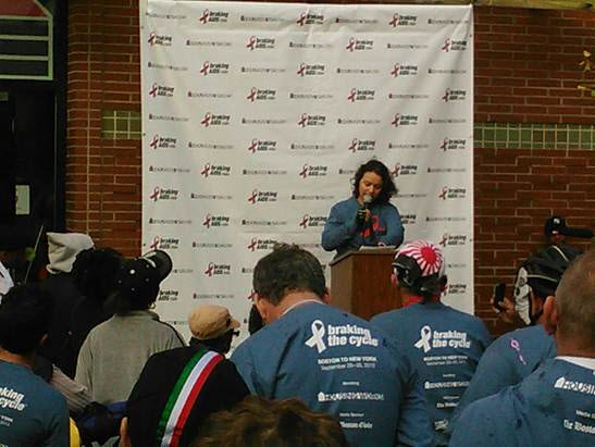By being here today, whether you’re a rider, a crew member, a Housing Works client or staffer, or one of the many, many kind people here who support this cause and this community—with time, with money, with compassion—you’re a part of that healing process, too. I know for a fact that your engagement with this community, with this issue, has been source of healing for someone else, probably someone else who’s here today. And until the final end to this terrible pandemic: I hope that being part of this fight helps you find a measure of healing as well. Thank you.