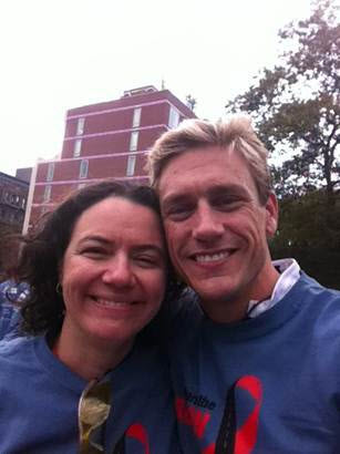 But when we first rode down East 9th Street, I didn’t see anyone I knew well. All I saw was a massive crowd of people, which in that initial moment, moved me instead of scaring me. It had been threatening to rain all afternoon—we had been doused by a brief shower when we cycled through Harlem earlier—it was chilly, and yet these loyal, tender-hearted people were standing, waiting, cheering, for us. I had been told to position myself near the stage, and when I got there, I had barely dismounted when I noticed several middle-aged African-American women approaching me and the riders immediately around me. We didn’t know them. They were strangers, and yet the second they saw us, their faces lit up and brimmed with emotion, and they moved toward us with outstretched arms. Without even consciously thinking it, I understood they were Housing Works clients. The one nearest me hugged my shoulder, kissed my cheek, and over the din of the crowd’s applause and cheering, she murmured in my ear what I am certain the other women were saying to the riders they were embracing: “Thank you. Thank you so much.” They didn’t have to explain further. It was in their voices. It was evident in the way a stranger wrapped herself around me without hesitation.