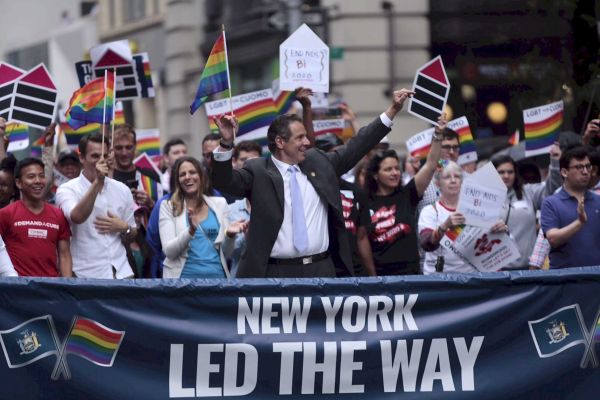 Is that a Housing Works sign or is the Governor just happy to see me? New York was the sixth state in the U.S. to make marraige equality legal and the most populous. It led the way for the domino effect of states that changed their laws to move toward the right side of history. New York can do the same for HIV/AIDS, which is as big and arguably an even bigger social justice issue than marriage equality. It’s also a battle we’re still fighting. Photo by Anthony Lanzilote.